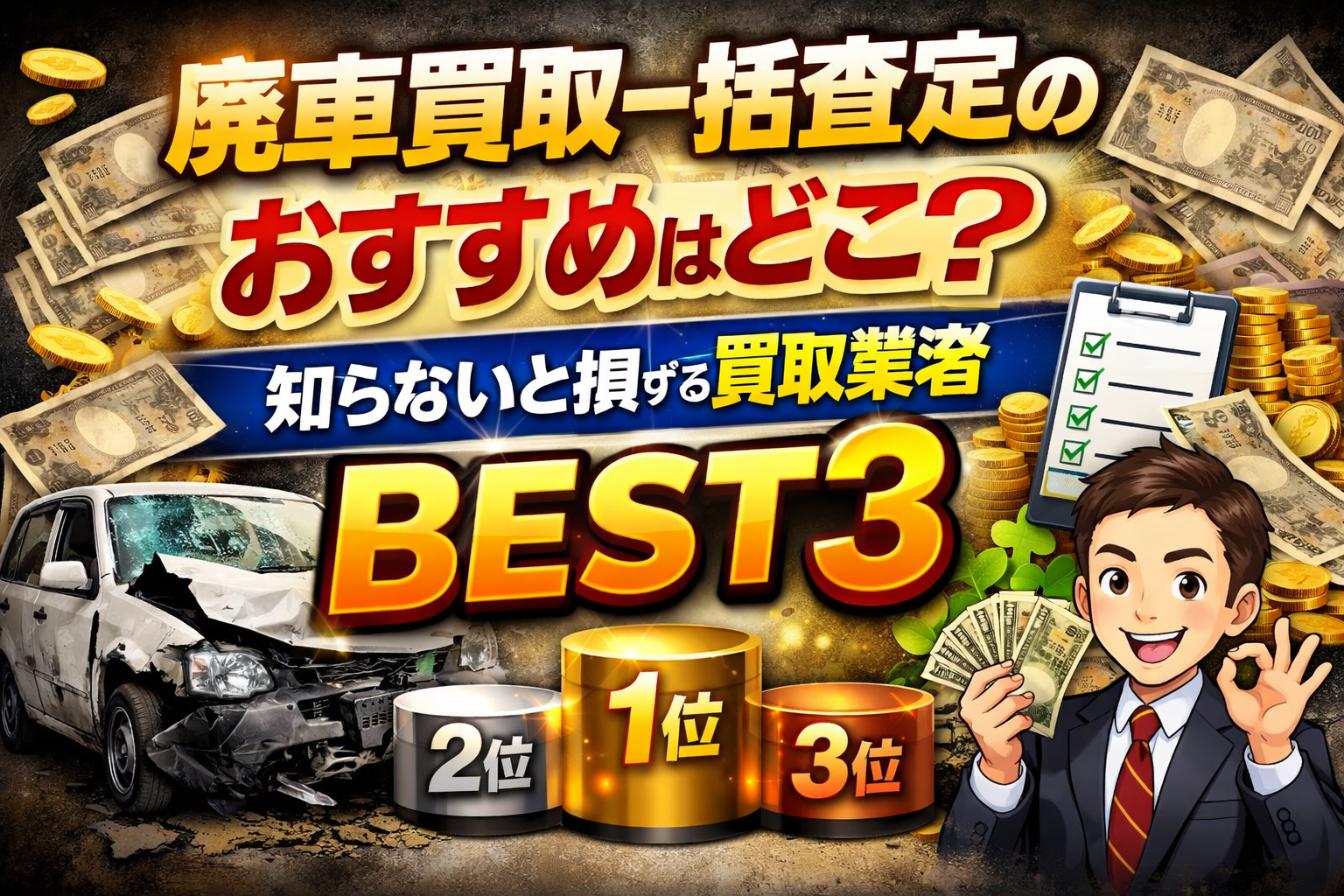 廃車買取一括査定で本当におすすめできる業者BEST3と、